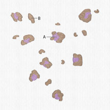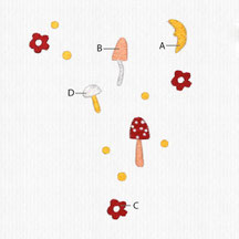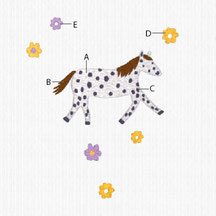 Wähle die Farbe für alle Elemente welche in deinem Muster mit "A" gekennzeichnet sind und füge sie dem Warenkorb hinzu.